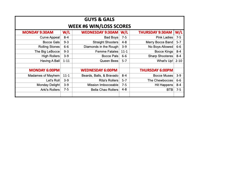 • In Remembrance – Bocce Roster